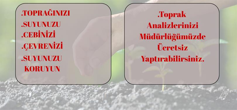Valiliğimiz koordinasyonunda ve İl Özel İdaresi’nin desteğiyle İl Müdürlüğümüz tarafından hazırlanan “2026 Yılı Toprak Analizi Desteği Projesi” kapsamında, ilimizde tarımsal üretim yapan çiftçilerimizin toprak analizleri ücretsiz olarak gerçekleştirilecek. Projeden en üst düzeyde faydalanmak isteyen tüm üreticilerimizi, toprak analizi yaptırmak üzere İl ve İlçe Tarım Müdürlüklerimize bekliyoruz.
