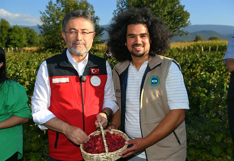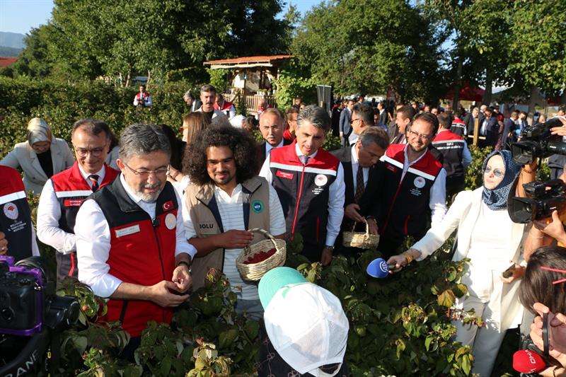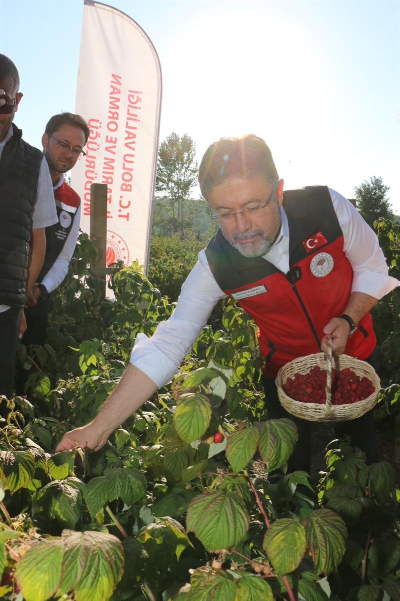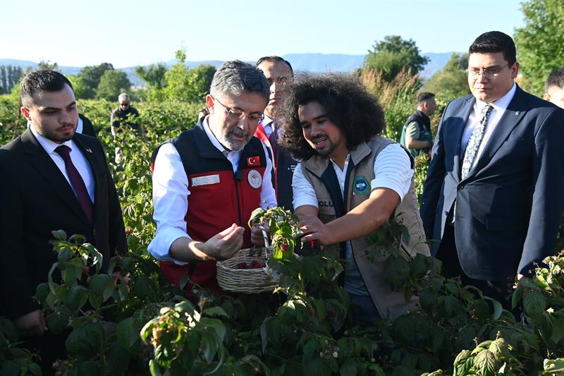 Tarım ve Orman Bakanı İbrahim Yumaklı, beraberindeki heyet ile birlikte Bolu’nun Karaköy köyünde bulunan Bonus Meyve Bahçeleri’ni ziyaret ederek organik ahududu üretimi yapan genç çiftçi Yunus Emre Kalaycı ve ailesiyle bir araya geldi. Bakan Yumaklı, hasada katılarak üretim sürecini yerinde inceledi.